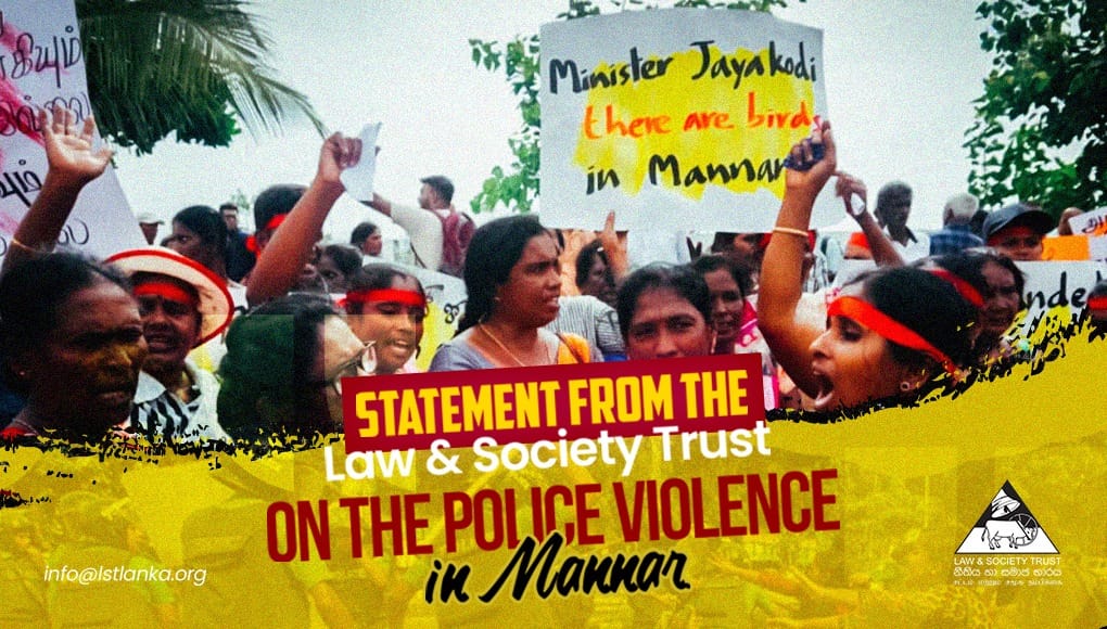 The Law & Society Trust expresses its grave concern and deep sadness regarding the violence unleashed against residents of Mannar who were peacefully protesting the ongoing wind turbine project that threatens their environment and livelihoods. Reports indicate that police forces resorted to brutal attacks against community members who were resisting the sudden transport of turbine parts to Mannar, despite the government’s repeated assurances of dialogue and transparency before advancing the project.